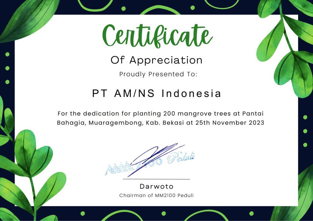 As appreciation from MM2100 Industrial Area, AM/NS Indonesia as one of tenants got Certificate of Appreciation as a proof AM/NS Indonesia contribution on this event.